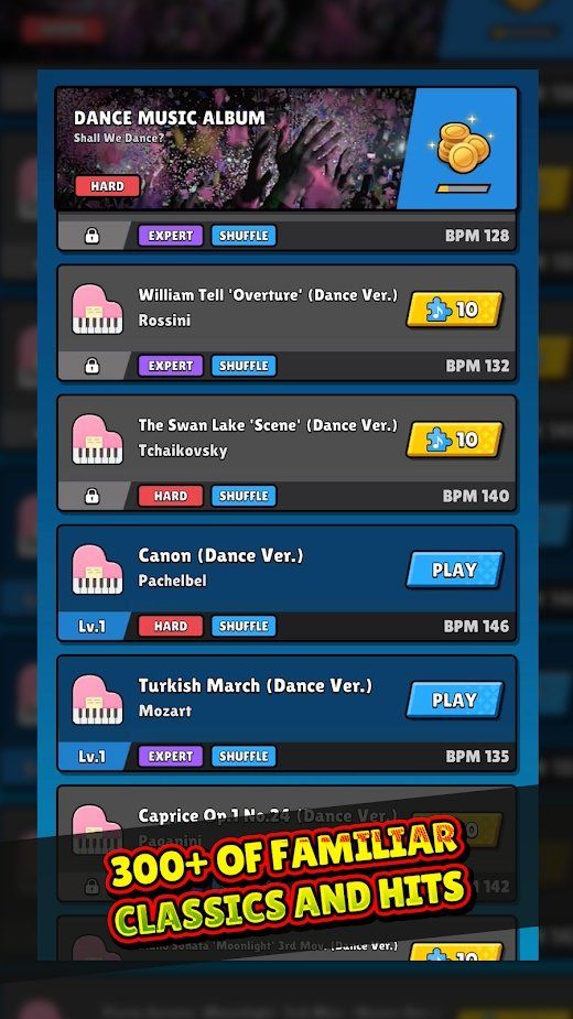 2、三百多首耳熟能详的歌曲可以挑战,锻炼玩家的反应能力和敏捷能力;