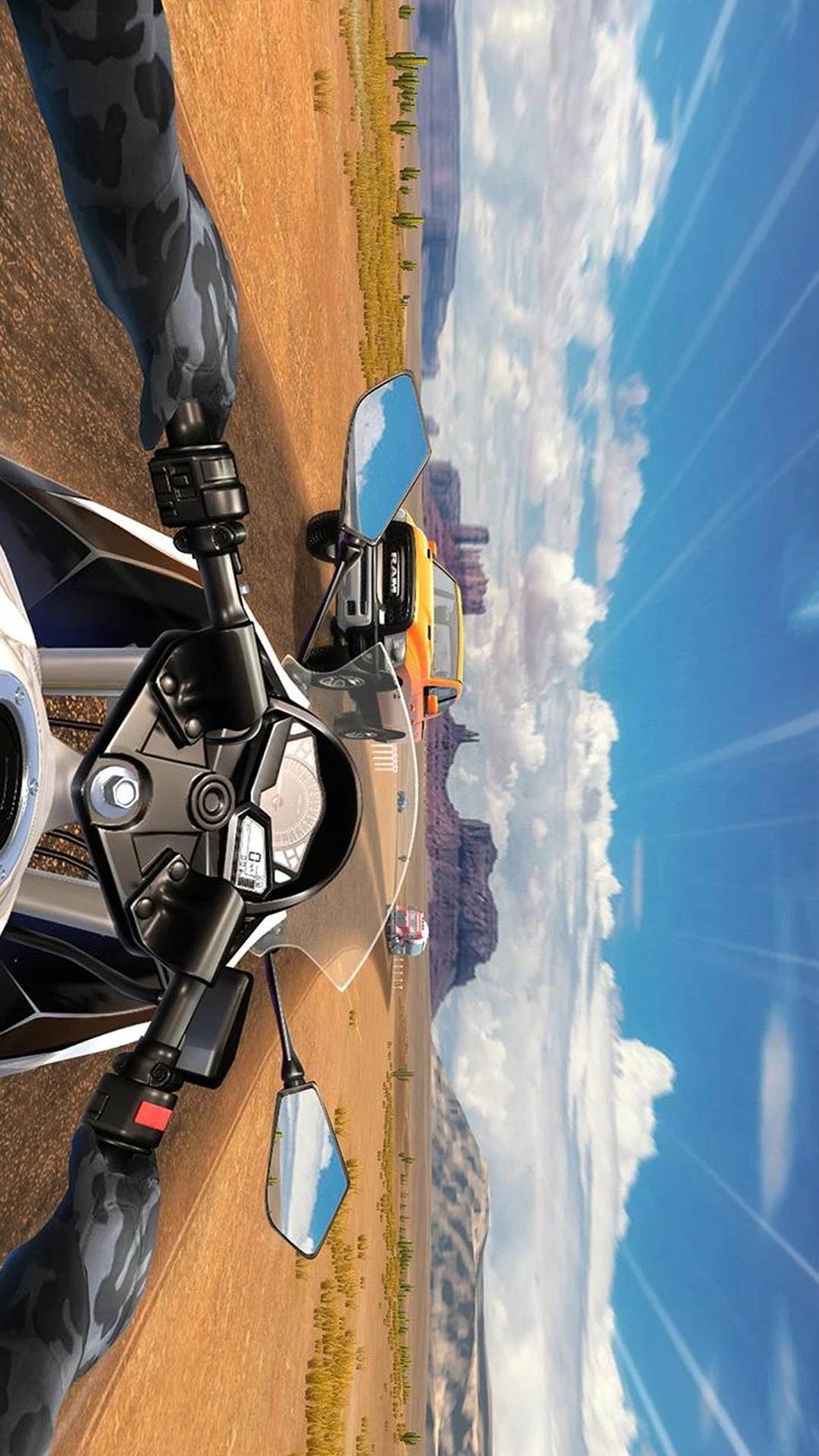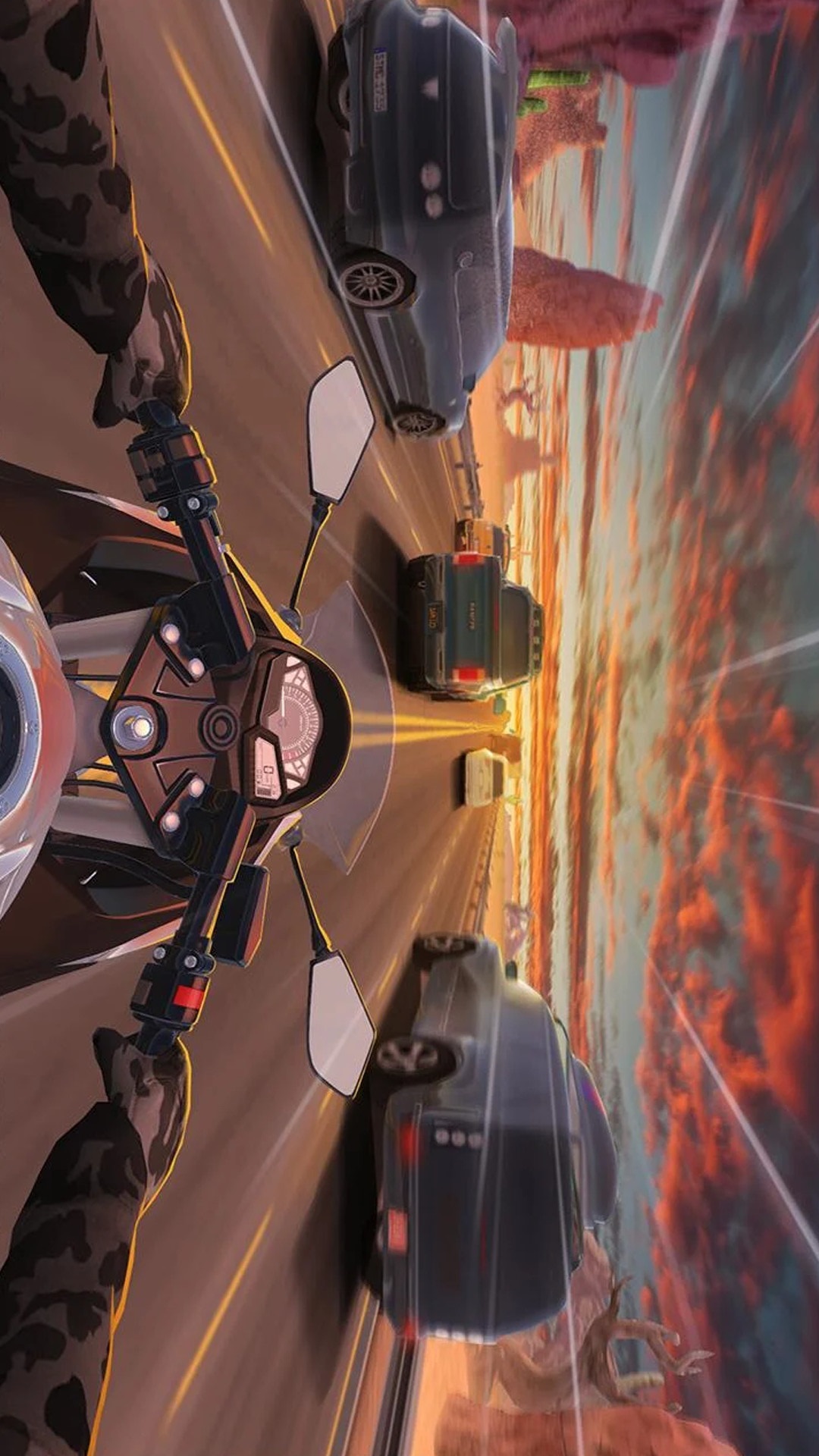 2、在游戏中,你将驾驶你的摩托车在无尽的高速公路上加速、超速!