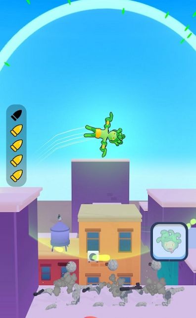 3、遇到障碍会自动跳跃,在跳跃的过程中,点击敌人并击杀他们。