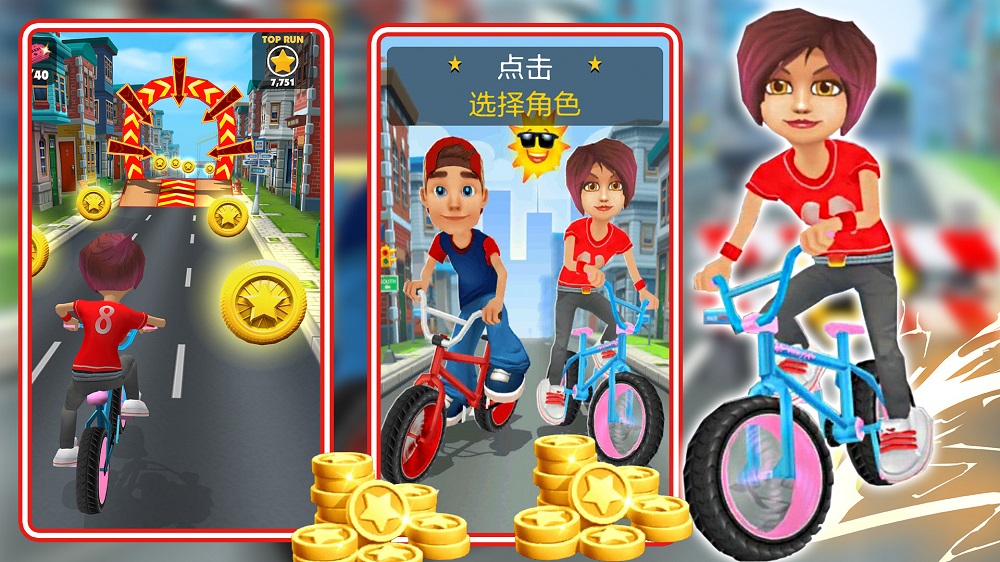 2、玩法带来多多的乐趣,丰富有趣的娱乐玩法,在不同的地图上踩着自行车;