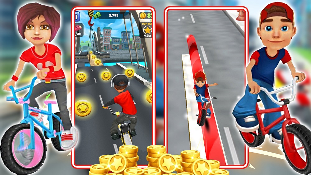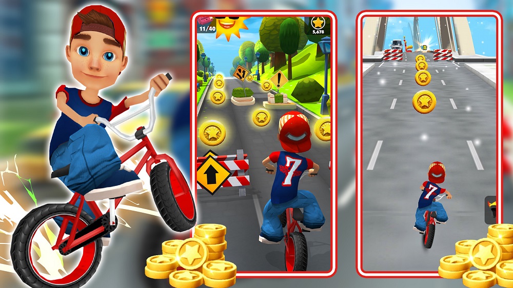 1、在《超级捣蛋达人》跳上你的自行车,滑动、跳跃、躲避、躲避并冲向胜利;