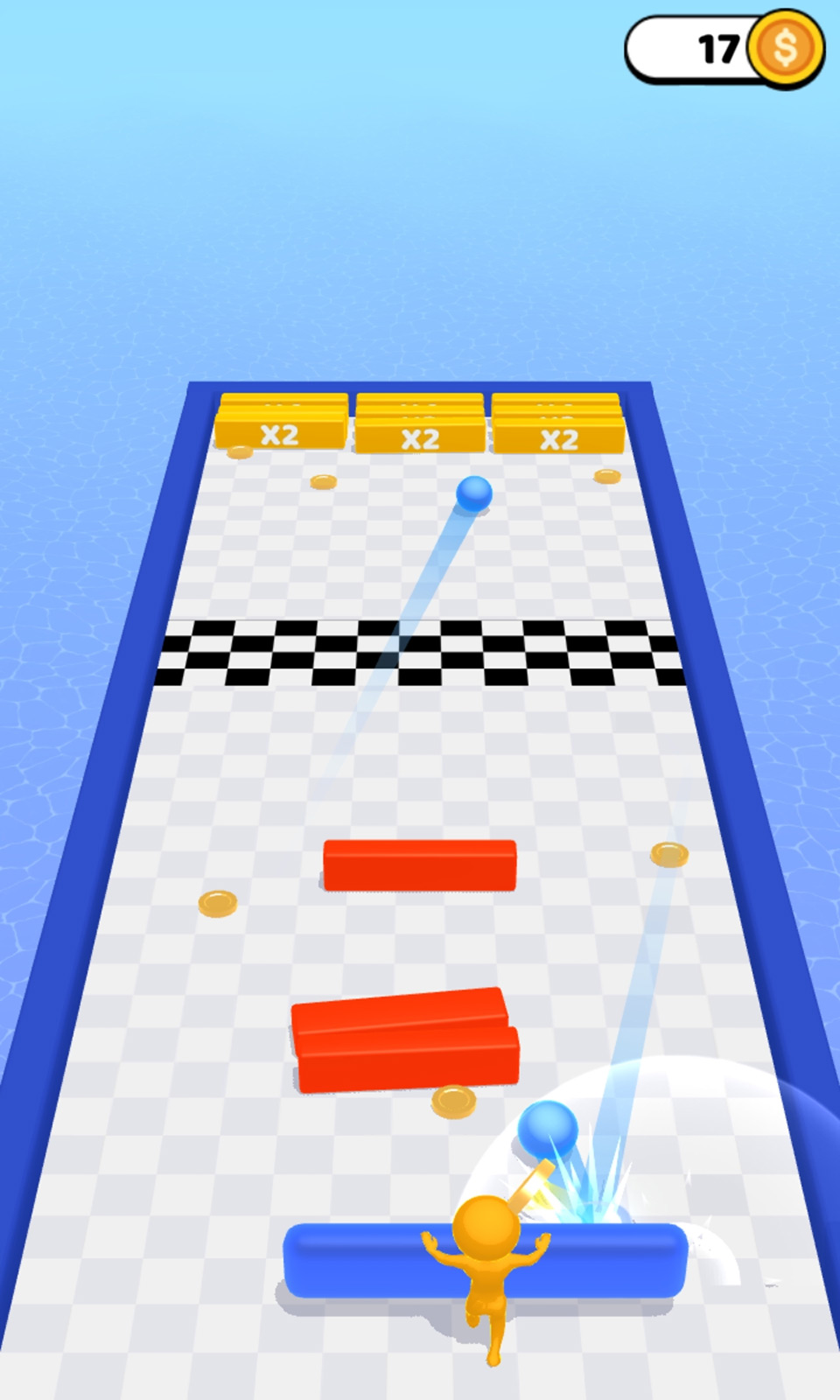 1、当距离越短,需要操作更快,利用反弹射击,来消除更多的方块。