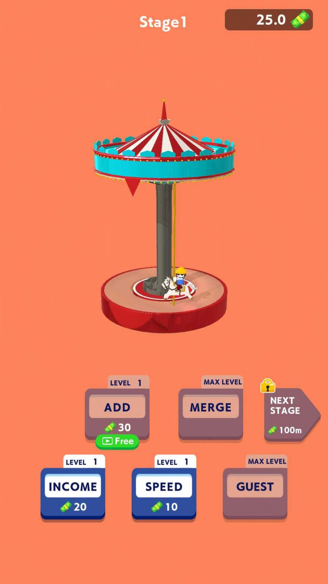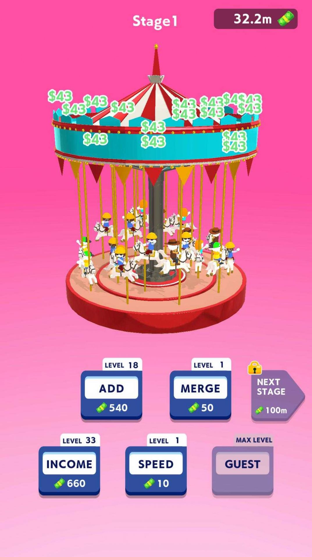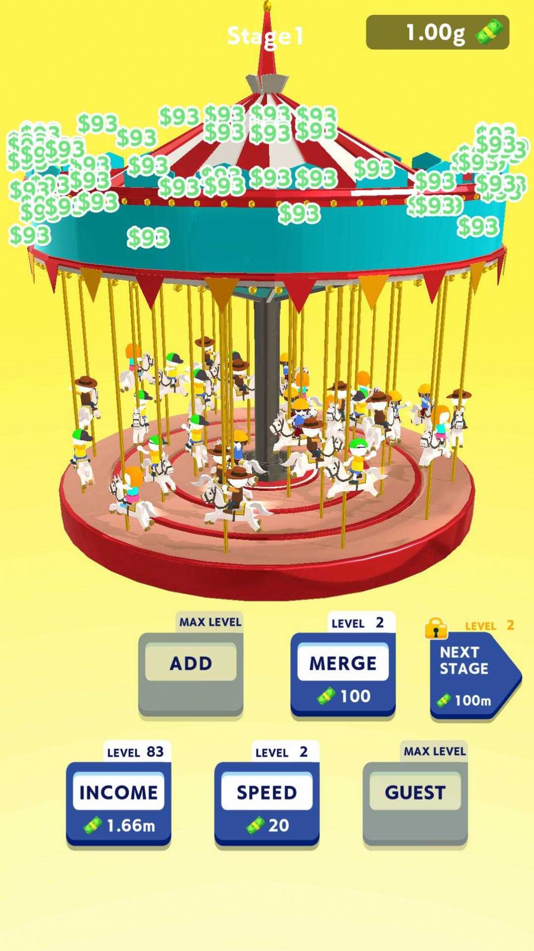 1、带上你的小伙伴儿们,一起开始经营的玩法,享受旋转木马的乐趣;