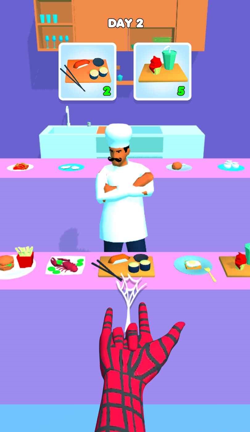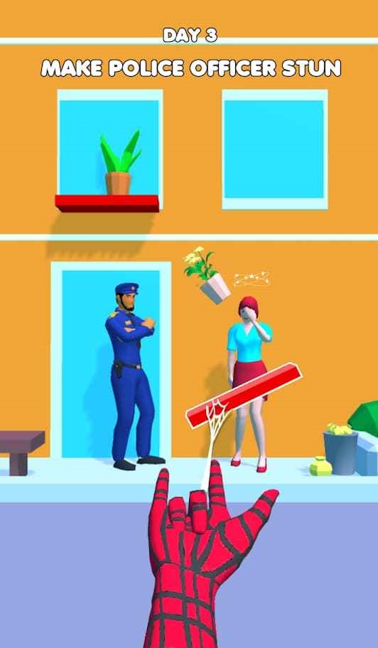 3、扮演邪恶的蜘蛛小偷,玩家利用他的射丝技能偷内衣、食物并在街上拖钓人。