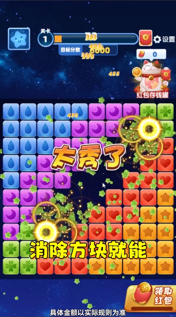 2、顺利的完成你的消除任务,就可以获得不同的道具奖励;