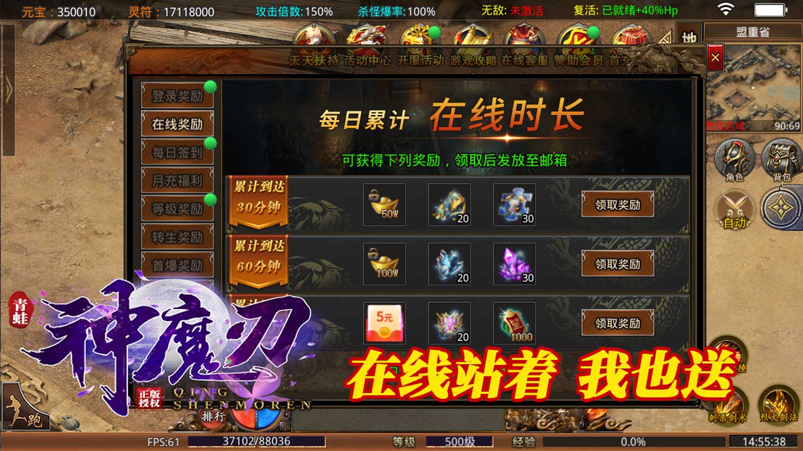 1、每天签到与累计在线时长,都能够领取到官方赠送的大礼包。
