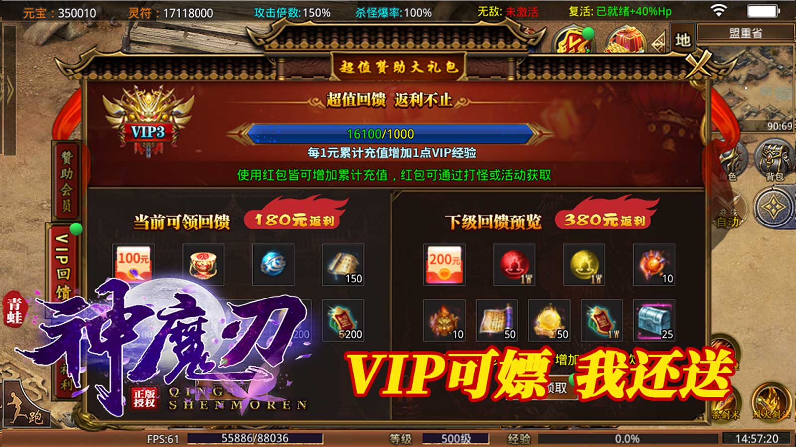 3、散人玩家无需氪金也能畅快游玩,轻松提升vip赞助特权等级。