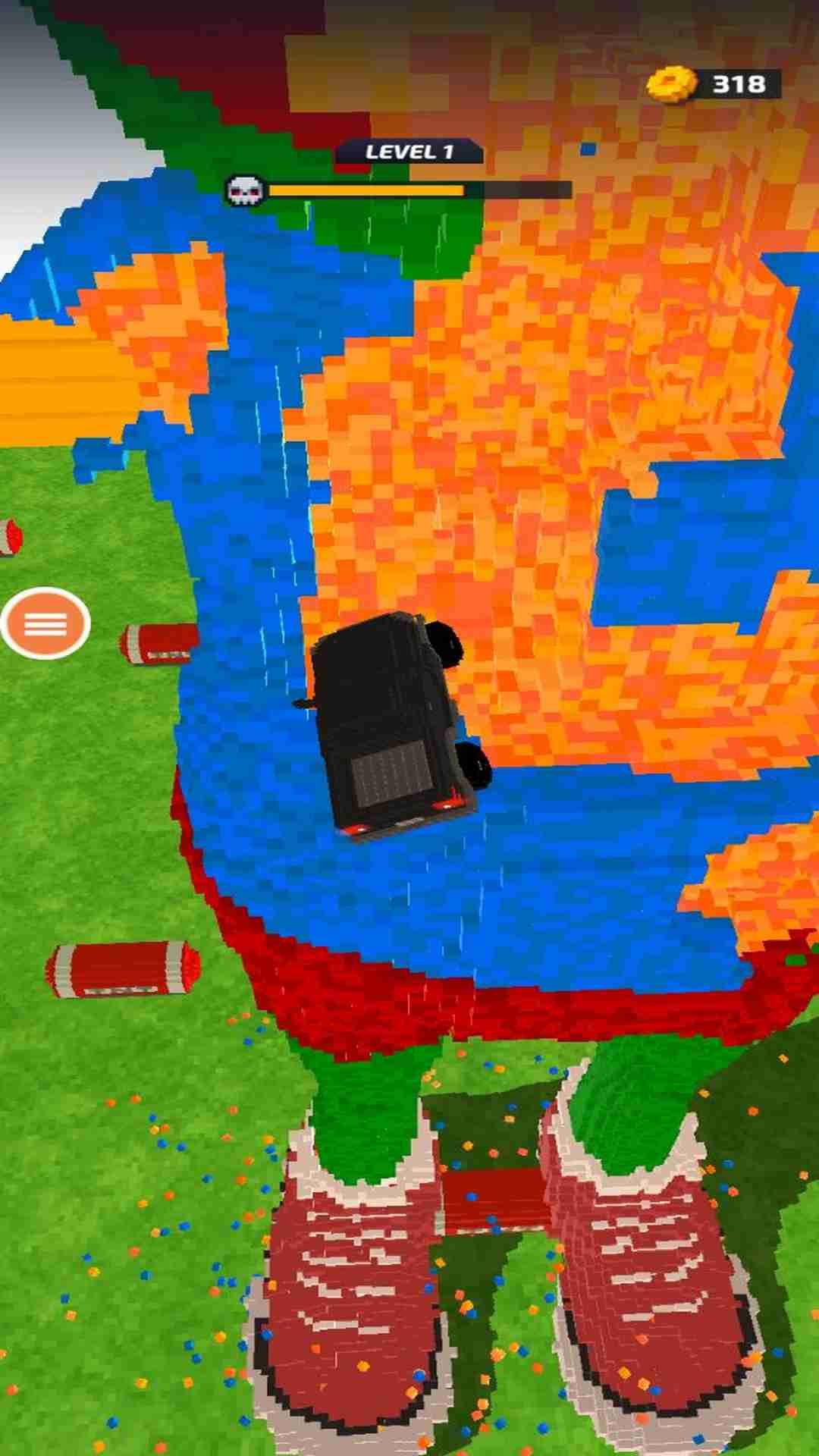 1、控制赛车的方向和速度,尝试用撞击的方式对方块雕像造成更大的破坏。