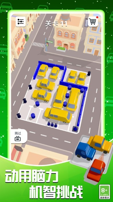 3、随着关卡难度不断提升,你将会遇到很多烧脑的任务,快速解决所有的停车难题吧。
