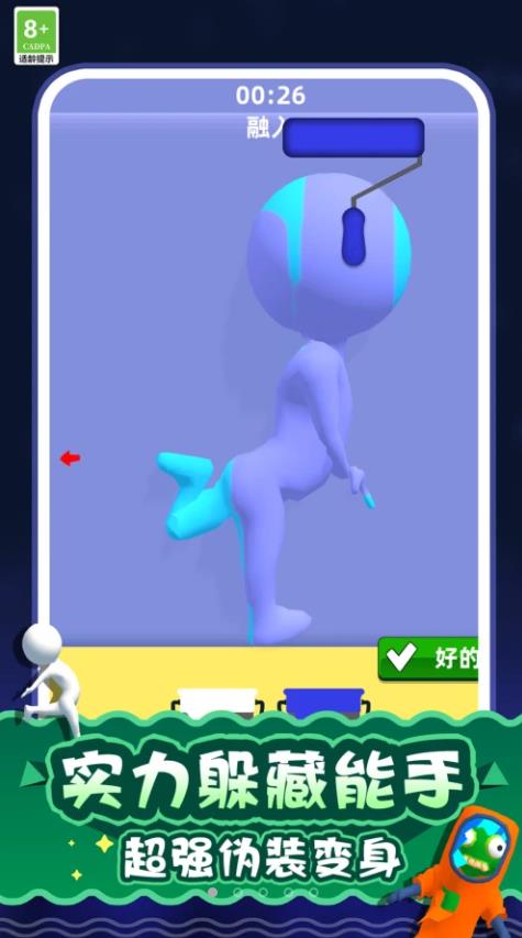隐匿大师3D游戏是一款很好玩的手机躲猫猫元素的游戏,在这里游戏的时候极其的具有意思哦,玩家在游戏的时候需要有着非常不错的隐匿技巧,让玩家们能够很好的去进行躲藏起来,躲猫猫的新奇元素玩法深受玩家们的喜爱,同时游戏内还有着非常多的伪装道具可以去使用哦,游戏极其的具有意思呢。