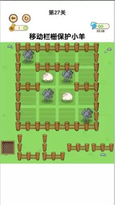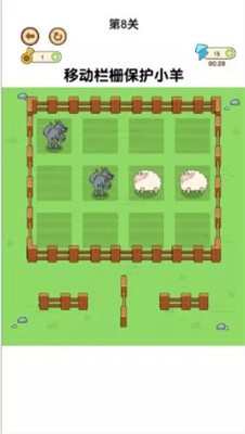 1.在不同的关卡中进行烧脑挑战,根据关卡的狼和羊的位置安插栅栏,顺利完成相应的关卡挑战。