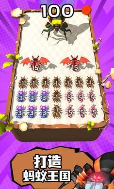 1.击败更多敌人,赢得战斗胜利,不断壮大蚁族力量;