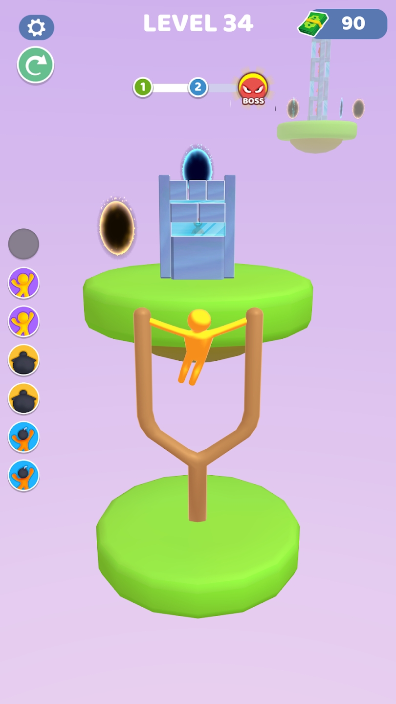 2、拉动弹射器发射列车,可在碰撞过程中摧毁所有障碍物。这很有趣。