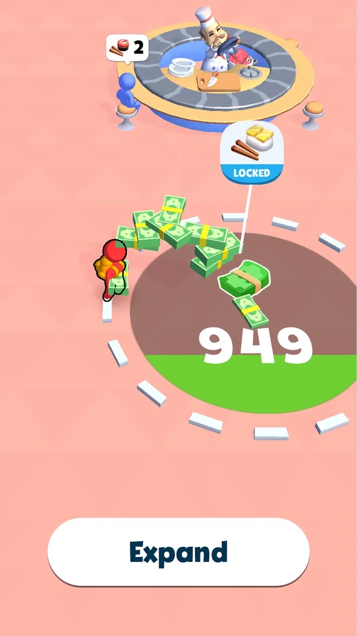 1、制作寿司,吸引顾客,赚取收益,不断扩张店铺经营规模;