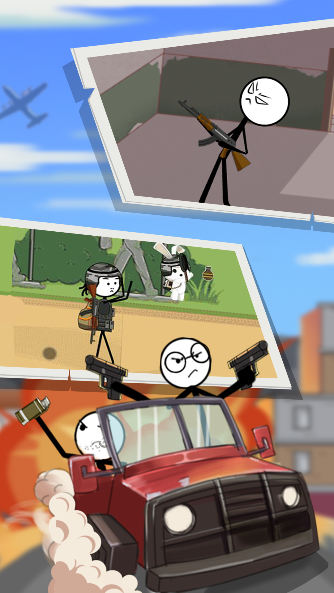 火柴人逃亡录3游戏是一款极其具有刺激的手机战场吃鸡类的游戏,枪战射击类的吃鸡游戏深受玩家们的喜爱,重要的是这款游戏极其魔性呢,火柴人元素更加的具有意思呢,玩家们在这里可以不断的去选择各种不同的射击模式来进行体验起来哦,不断的去击败各种不同的敌人,让你可以获得最终的吃鸡胜利吧。