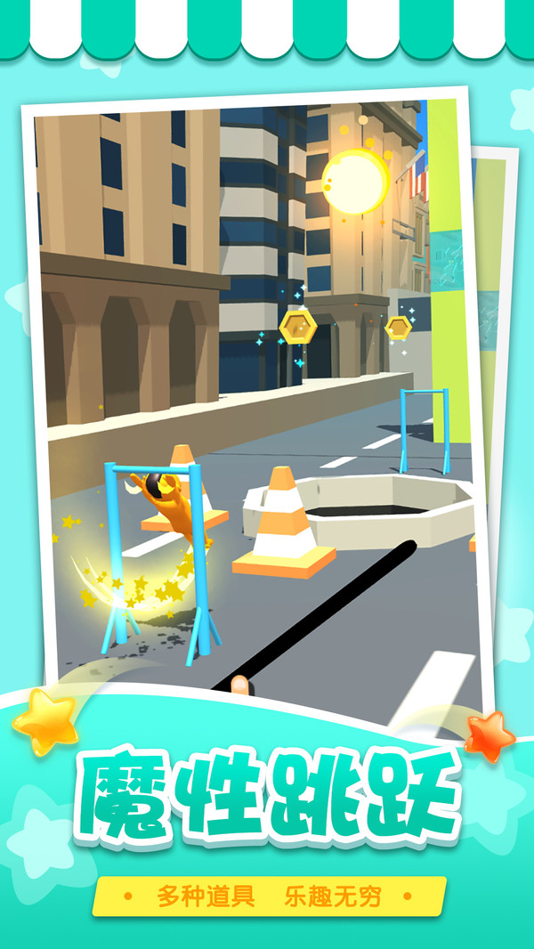 2、魔性跳跃,多种道具,乐趣无穷,丰厚的游戏奖励,带来更多的惊喜体验;