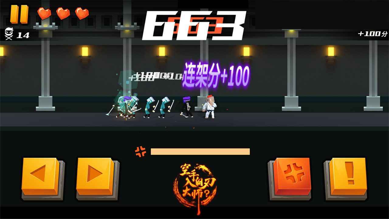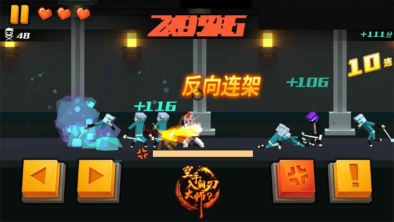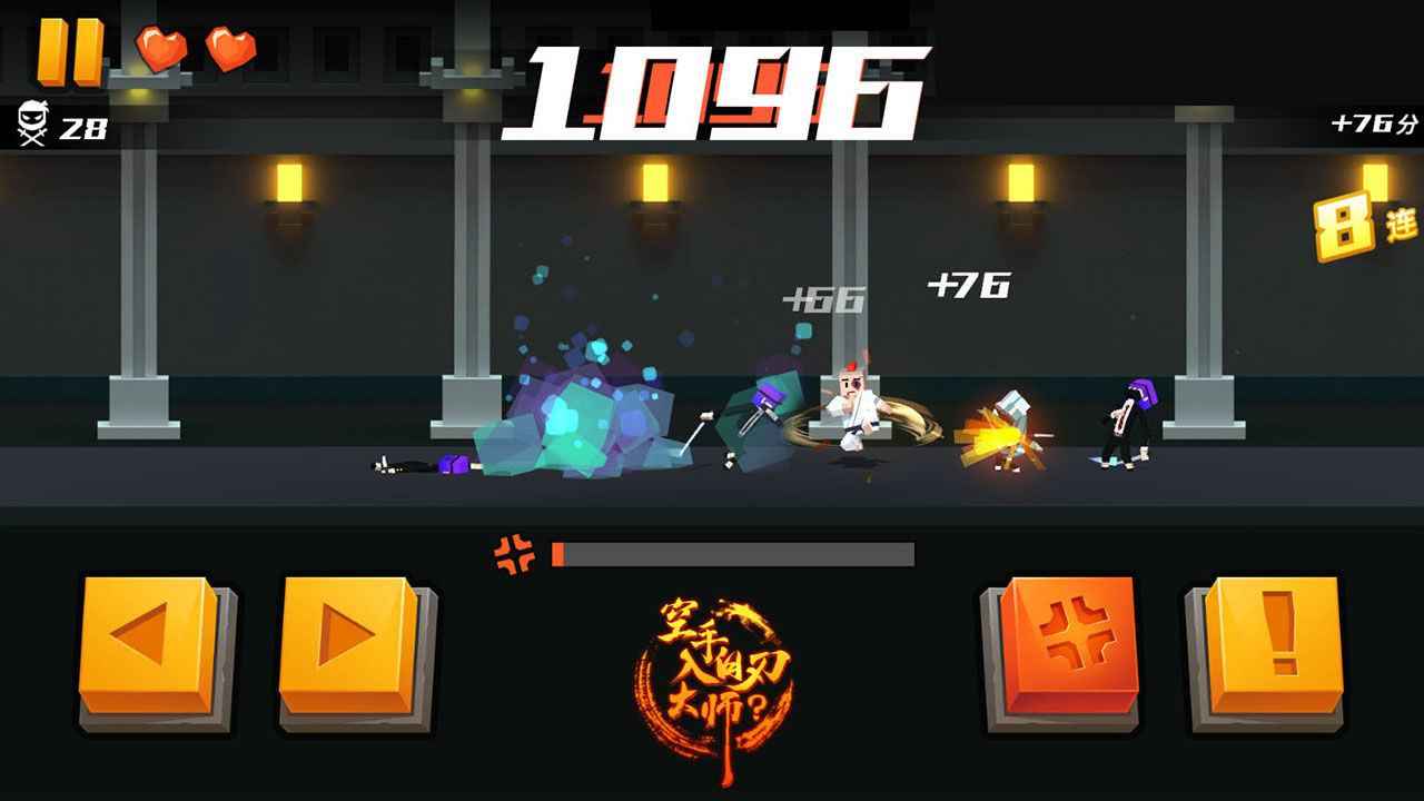 2、易玩的游戏,街机风格的游戏,空手的化身变成白刃大师的挑战;