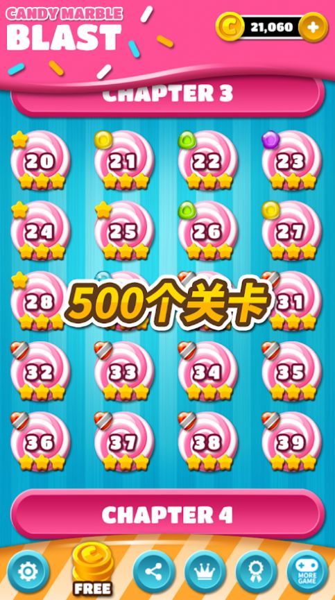 2、跳进魔法的糖果仙境里,免费挑战上百个消除关卡;
