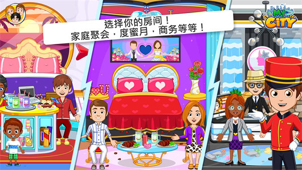 1.我的城市酒店公寓一款休闲的经营游戏,游戏中有很多丰富多彩的场景模式。
