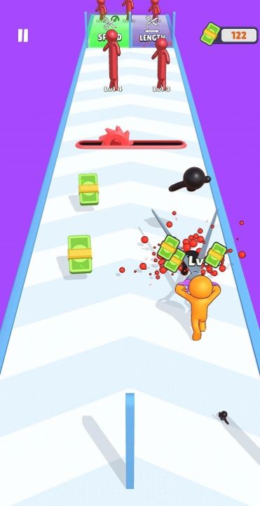 3、增加剪刀速度和长度的跑酷游戏,玩家将扮演剪刀战士,手持剪刀向前冲锋。