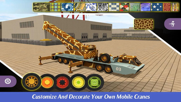 1、8辆精美的轮式吊机模型,吊机改装:升级、更换油漆、更换花纹,更换轮毂,良好的物理特性和驾驶手感;