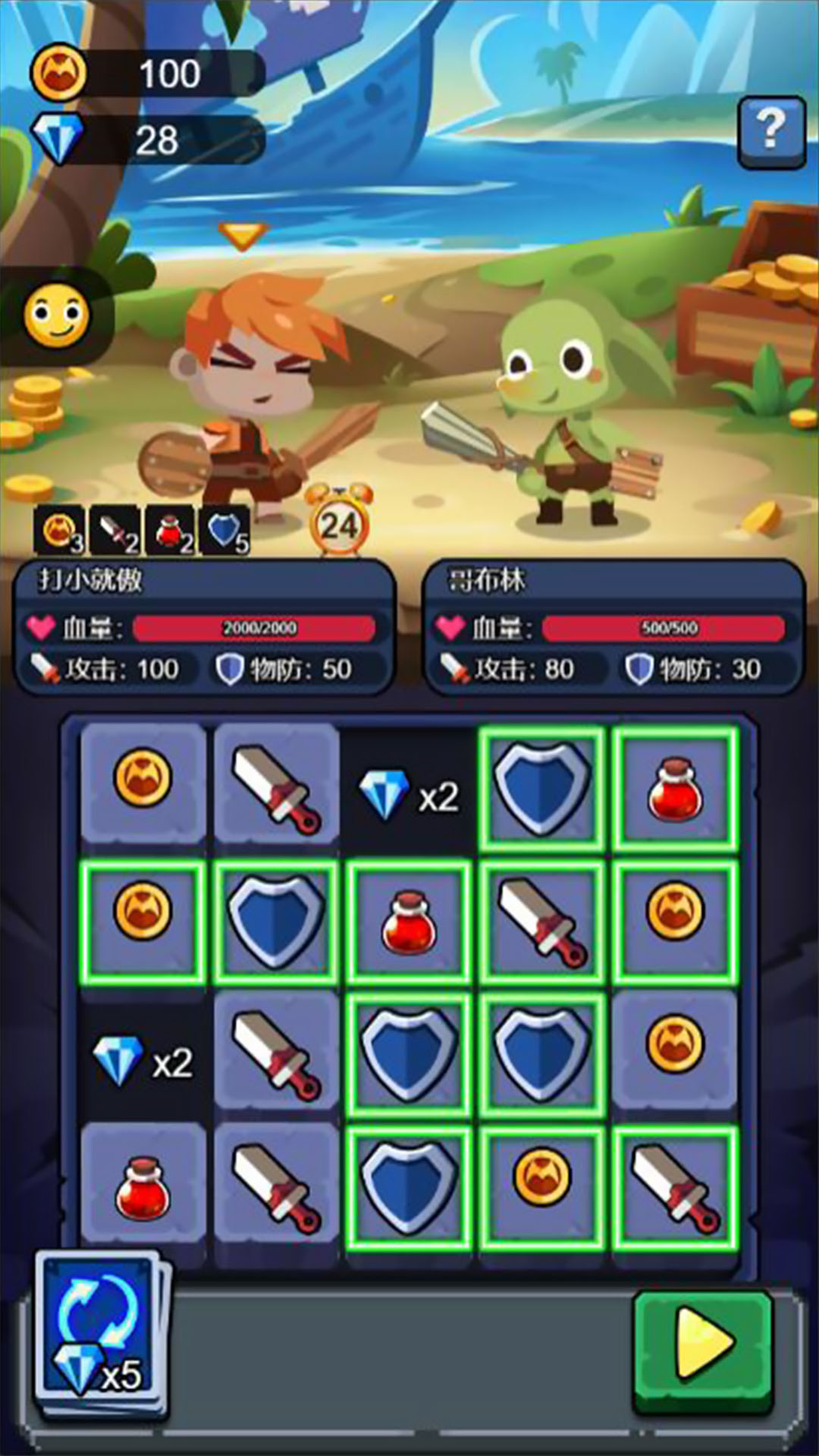 游戏通过固定框选下方图标的方式根据决定本轮攻击防御生命恢复等。