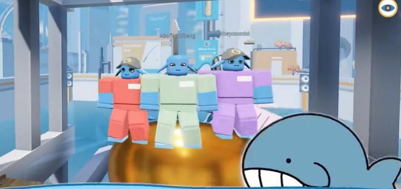 3、大楼不断的被摧毁,想办法站在更高的地方,小心水底的鲸鱼。
