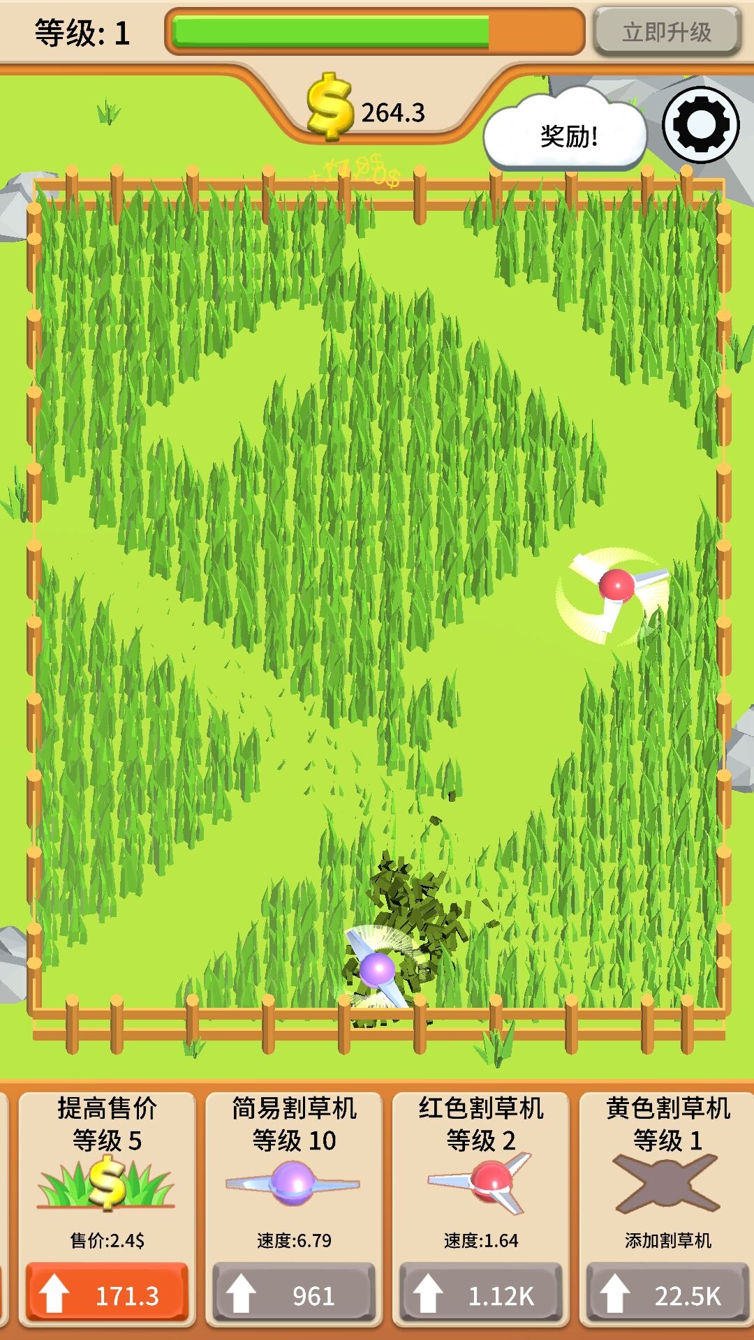 趣味割草模拟游戏,开局一把镰刀疯狂割草清理草场,解锁升级你的工具装备,提升割草效率,更多的割草玩法解锁体验,打发休闲时间。游戏拥有着多样的关卡挑战,玩家将自由的滑动手指来进行割草,在规定的时间内清除所有的草即可。