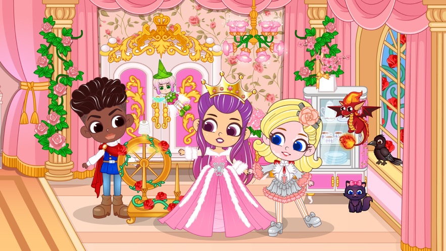 1、这是一款自由设计房间的过家家游戏,这里有白雪公主、灰姑娘、睡美人、海的女儿、阿拉丁、冰雪女王;