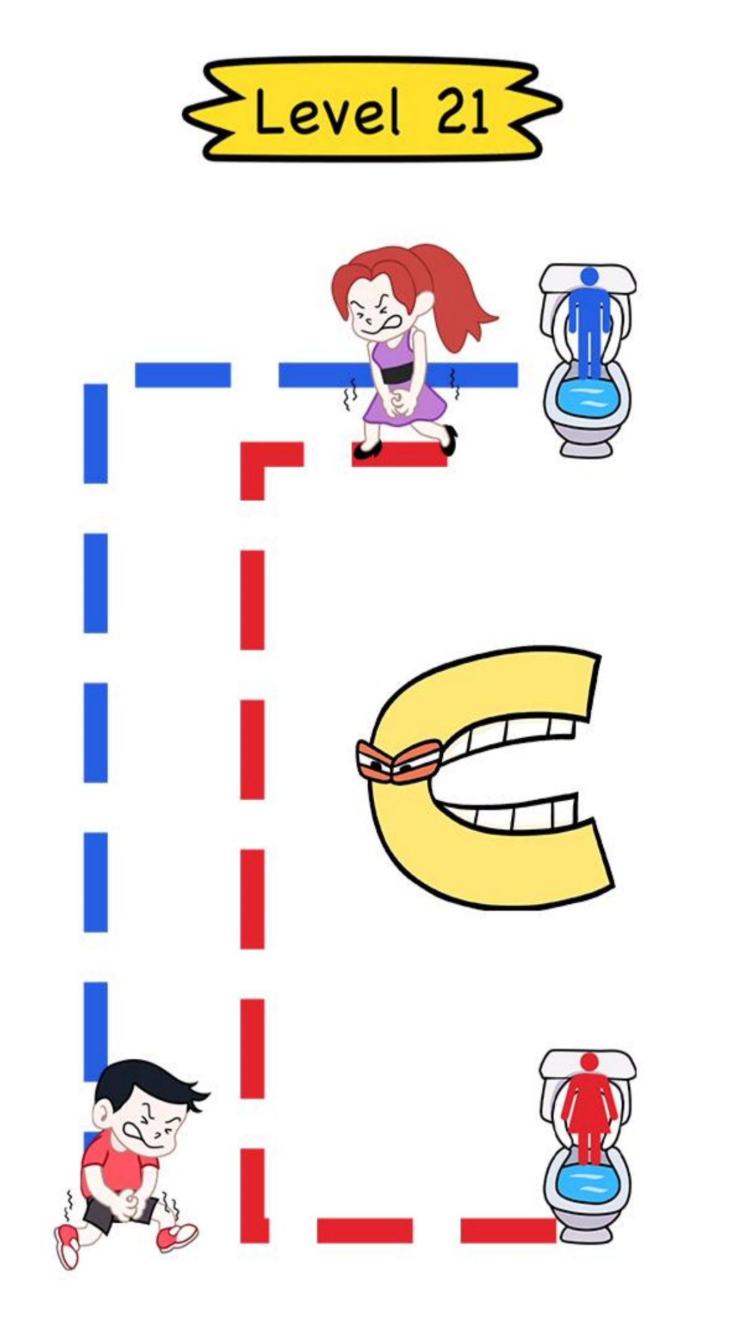 男孩和女孩顺着线跑到厕所,游戏就成功了。