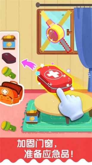 4、各种不同的天气出现,脑洞大开快速应对,各种急救道具随时准备,通过各种互动帮助宝宝快速熟悉天气。
