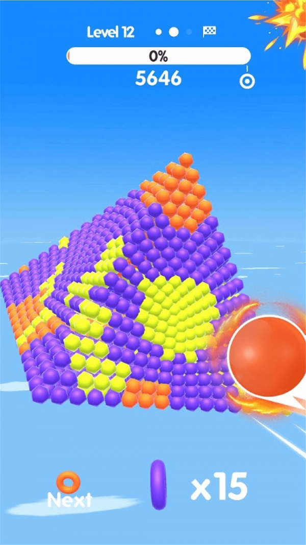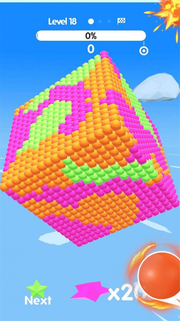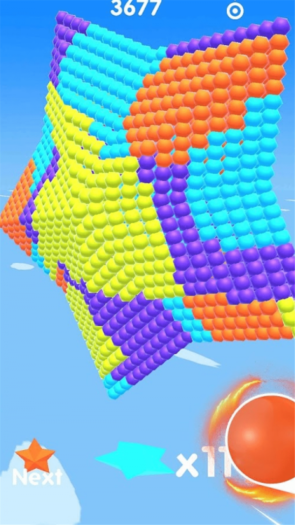 在游戏中,你的上方会出现一个3D几何图形,你需要不断向它发射不同颜色的球来消除它