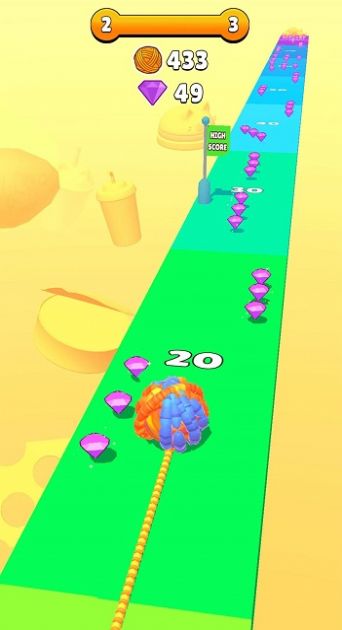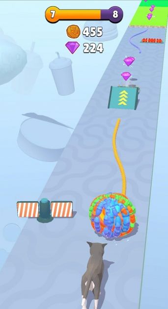 3、帮助小猫滚动毛线球的跑酷游戏,玩家要控制猫线球的滚动方向。