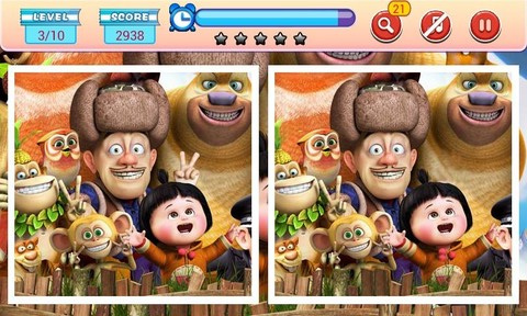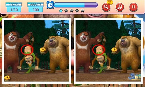 2、让玩家疯狂和着迷的熊出没找茬游戏,精选了大量熊出没的精彩、搞笑剧照。