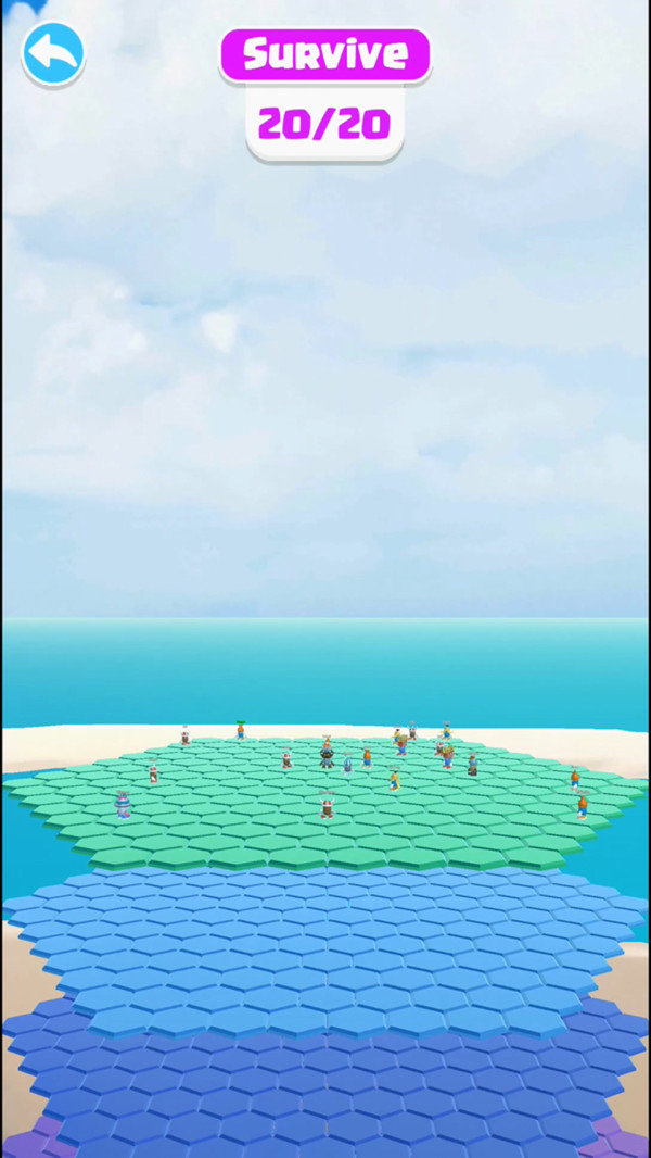 3、我们需要控制自己的豆豆人在六边形空中平台上挑战,用你优秀的操作来取得游戏的胜利,这款游戏只能有一个胜利者,