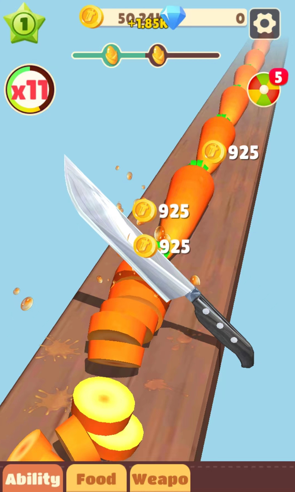 3、切割的越多,得到的积分越多,收获金币,解锁道具。