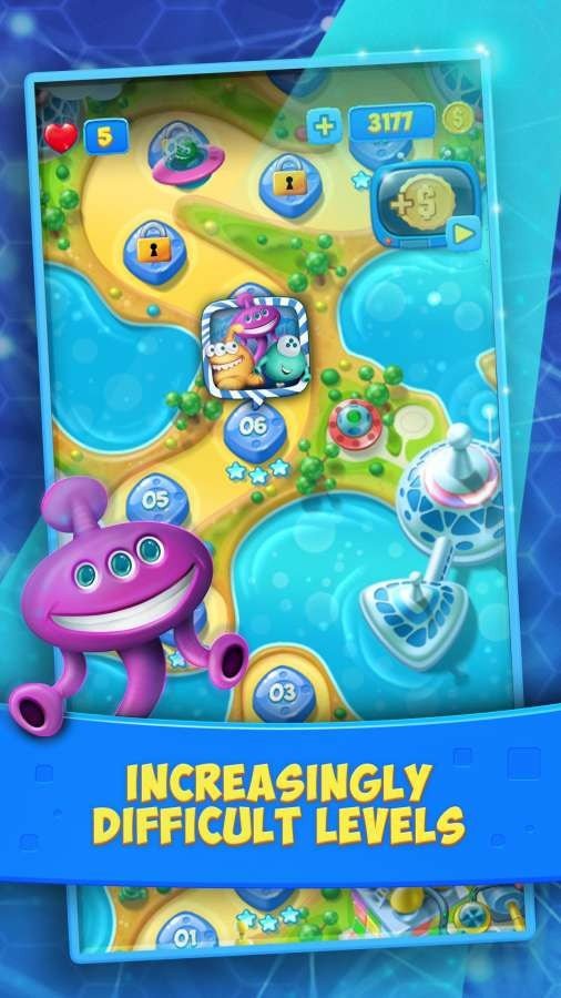 3、有着Snappy审美和声频,也有外星生物,持续提高三维消消乐技巧;