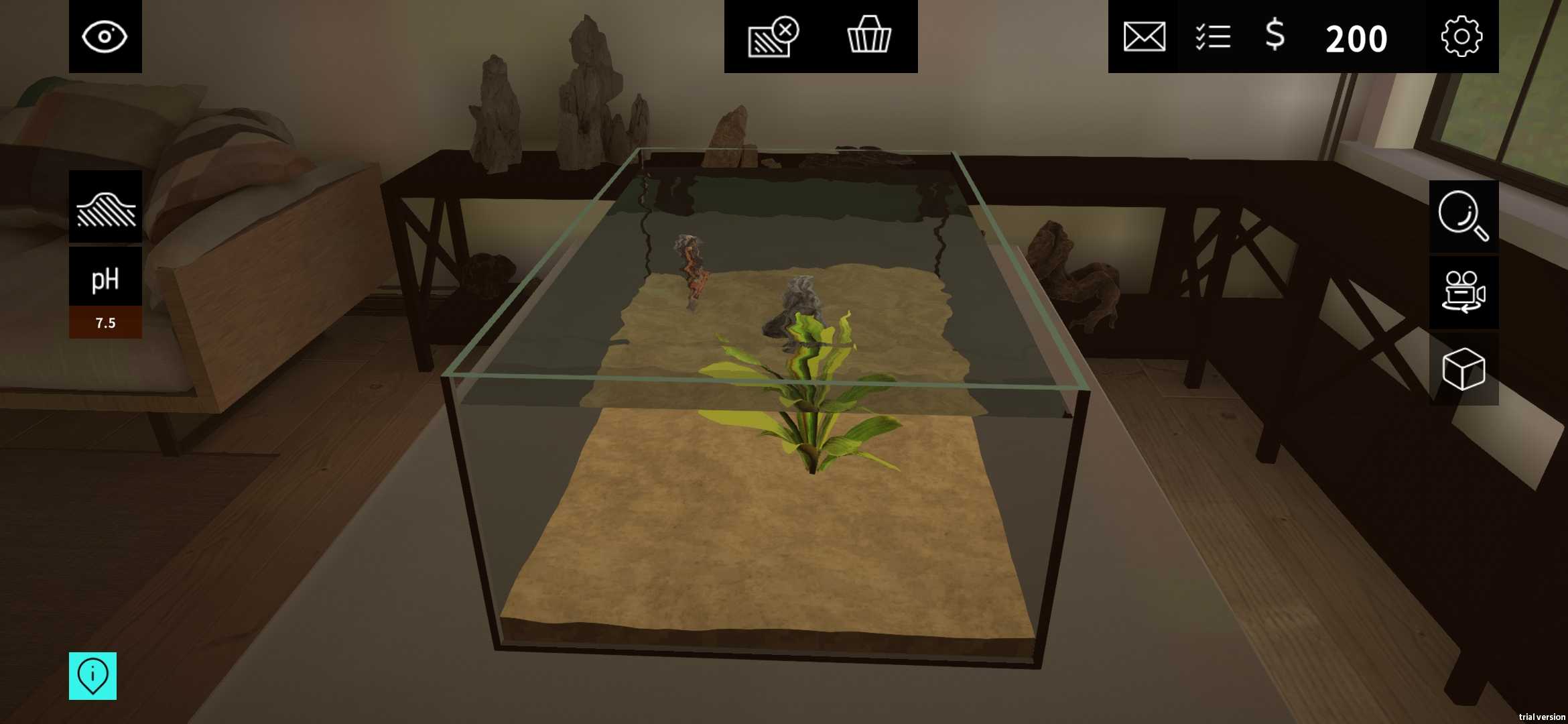 2、虽然只有一点手,但现实模式是鱼和水草有必要调整水质,如果不喂食的话,死后玻璃会变脏,必须手动清扫,也没有送料器的缘故;