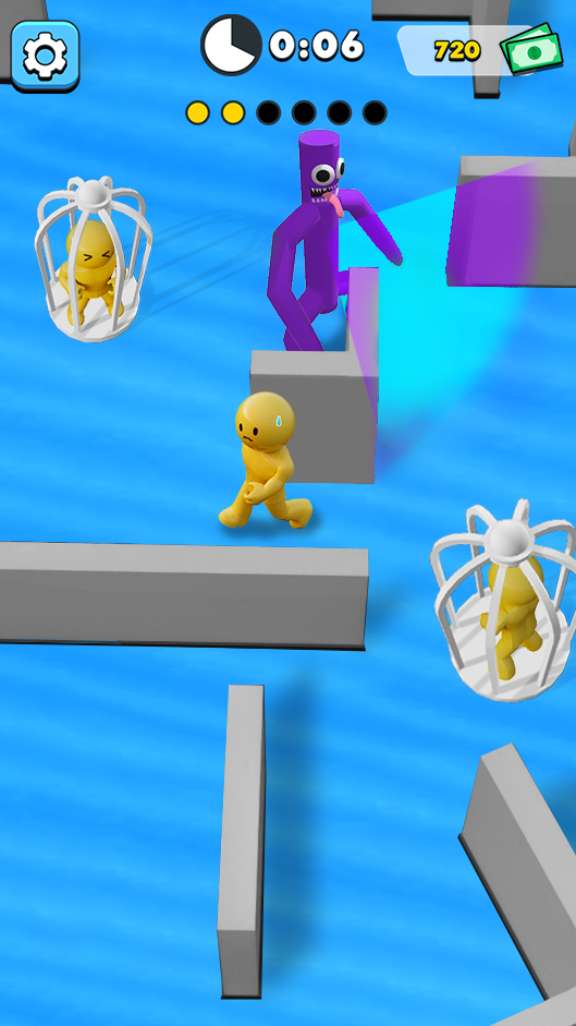 在彩虹怪物捉迷藏中,您可以扮演寻找者的角色,试图抓住不幸的受害者,或者您可以在限时任务中隐藏和生活。扮演蓝色怪物或躲藏者,选择你最喜欢的角色,享受免费的彩虹捉迷藏策略游戏。