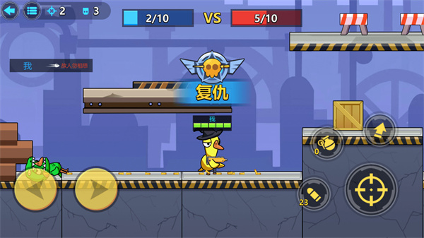 1、控制太空鸭战士参与战斗,和对手来一场你死我活的对决。