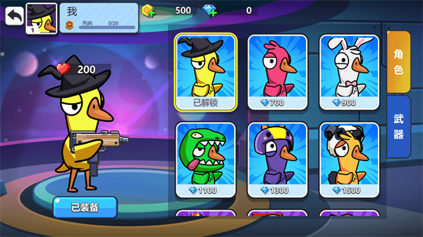 在这款游戏中,玩家可以为自己的鸭鸭搭配不同类型的武器而后进入战场。