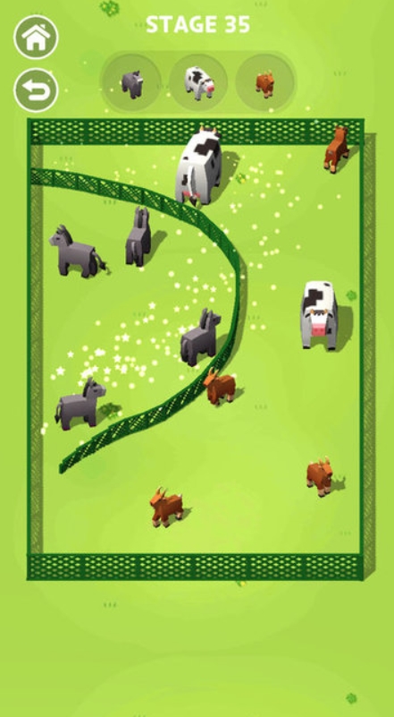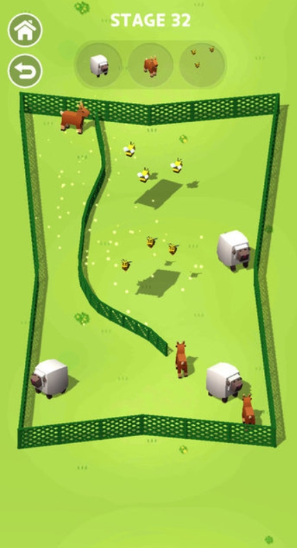 2、根据不同的动物来对农场进行合理的绘制围栏,玩法新颖有趣。