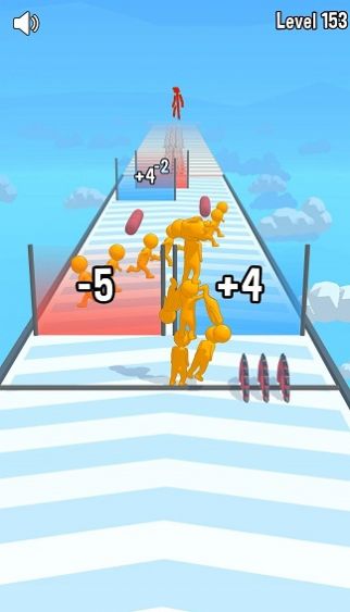 3、滑动屏幕控制方向,收集来回移动的人群,让自己长高,躲避障碍直到终点。