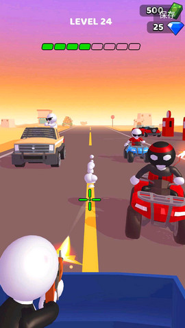 2、不断战斗消灭更多的对手,更快的打败对手,控制驾驶车辆的方向,射击敌人,与敌人展开激烈的射击决斗。
