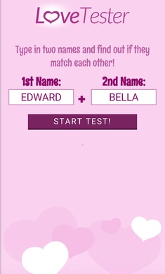 爱情测试仪是一款很有趣的休闲游戏,这里的玩法十分的新颖有趣,里面有着许多精彩的恋爱题目,都是非常有趣的,是一款可以帮助情侣测试缘分的一款游戏,直接在游戏内输入名字就可以了解到了,游戏过程十分的有趣玩法很丰富,是一款特别新颖的游戏赶紧来试试吧。