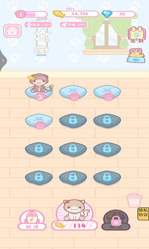 可爱猫咪,在线等你!在这里收集各类花色的猫咪,它们将为你收集各式材料,助你轻松制作华美服饰!