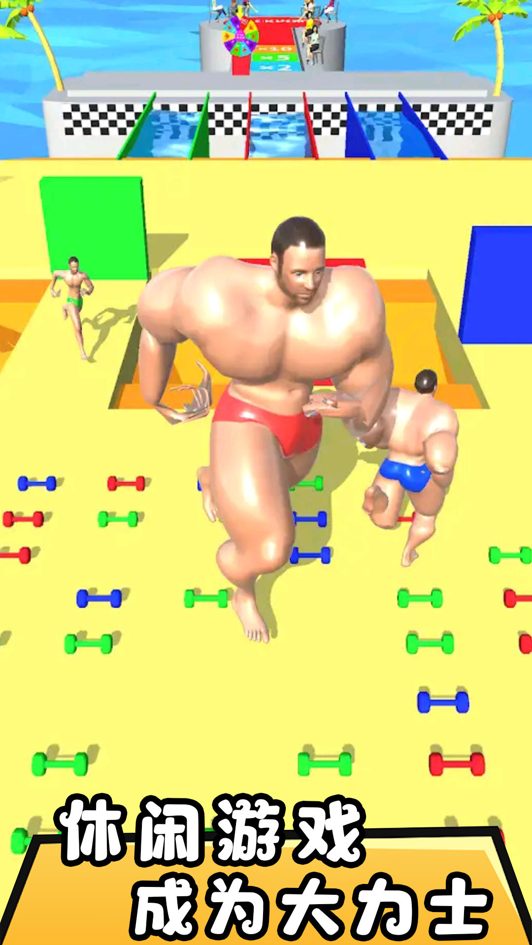 3、每场比赛都能带来欢乐,你要快速抢夺道具,不断增大角色体型,快速获得奖励。