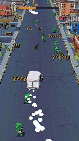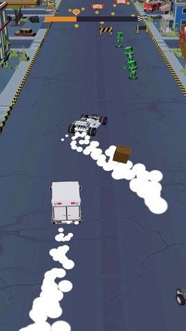 2、地图上有很多的障碍需要去躲避,还有一些绿色的僵尸,狠狠地撞击过去。