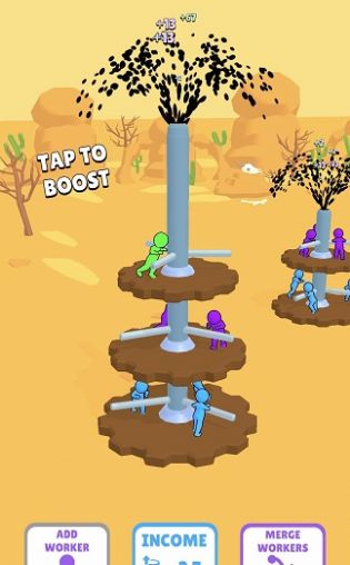 2、雇佣工人手工采油的放置合并游戏,玩家发现了大量的油田。