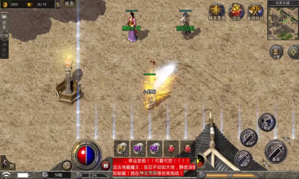 2、野外直接挂机刷怪,能掉落各种未鉴定装备,享受激情的PK对战;